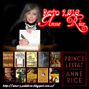 A pocos días de acabar el año llega el momento de hacer balance de lo conseguido en 2015 (literalmente hablando) y de proponerse nuevos retos para realizar en 2016. Así que en esta ocasión, además de apuntarme a aquellos que vea por los blogs y me interesen, he decidido realizar mi propio reto. Y es que no hace mucho que conseguí por fin el último libro de las Crónicas Vampiricas de Anne Rice, El príncipe Lestat, y me dije, ¿por qué no hacer una relectura de toda la saga? Por algo es una de mis favoritas, sino es la que más. Así que pensando, decidí que como no hay nada mejor que leer acompañada, os propondría el mismo reto que yo me he propuesto, leer todos los libros de la saga (o en mi caso, volver a leer casi todos ellos) durante el 2016.